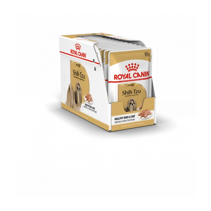 Alimentation humide spécialement formulée pour répondre à tous les besoins nutritionnels de votre Shih Tzu adulte et convient aux chiens de plus de 10 mois. Contient un mélange exclusif de nutriments afin de préserver et de renforcer la santé de la peau de votre chien, ce qui contribue également à entretenir son pelage. Cette formule est de plus enrichie en acides gras oméga-3 EPA et DHA et en huile de bourrache, des acides gras essentiels pour nourrir la peau et le pelage de votre chien. La formule nutritionnelle spécifiquement adaptée contient également des chélateurs du calcium pour une meilleure hygiène dentaire. De plus, cette formule permet d’améliorer la fonction digestive de votre chien en réduisant non seulement le volume des selles, mais aussi leur odeur !